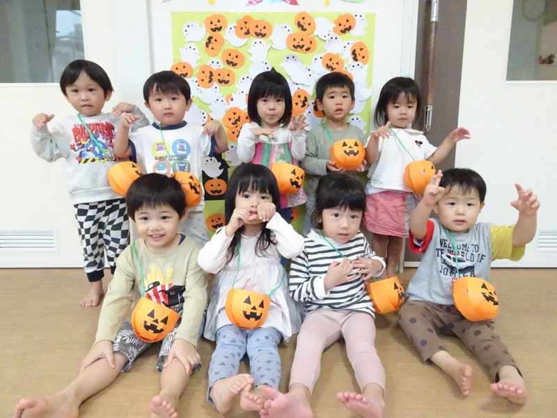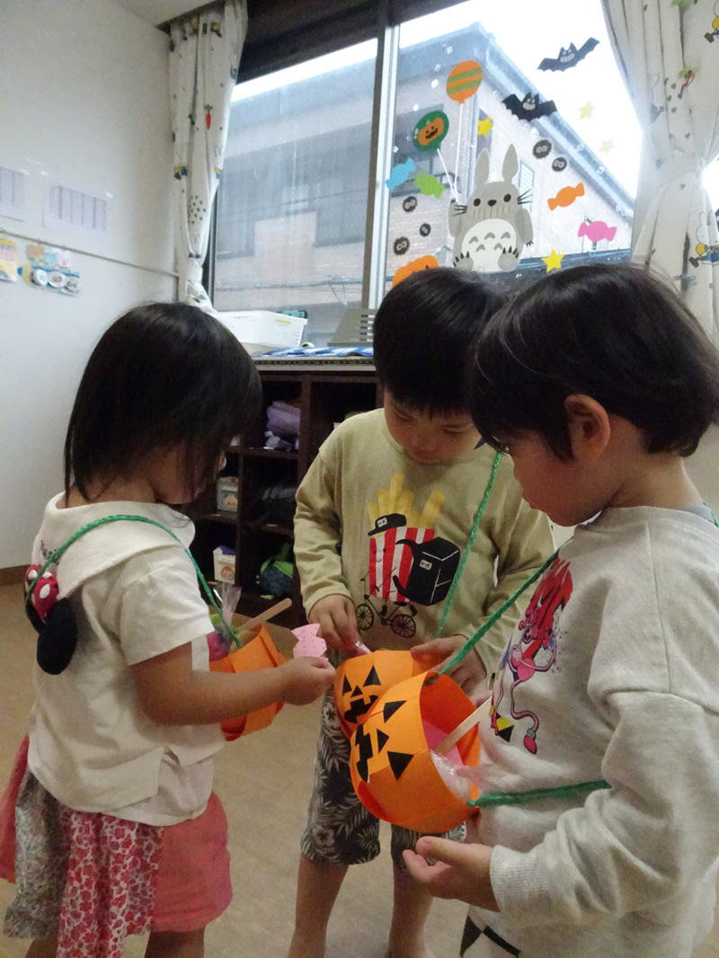 みんなでハロウィンパーティーをしました!(^^)! お菓子のお店屋さんごっこでは、カラフルなお菓子に興味津々でした☆ |