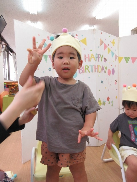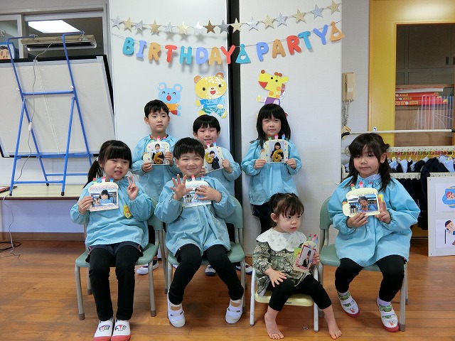 3月のお誕生日会がありました(*´ω`*) 今月は、5名のお友達が主役です☆彡 インタビューでは、かわいい花束の中から、お花を一本選んで、 後ろに書かれた質問に答えてくれました☀ 子どもたちそれぞれ、年齢の書かれたブローチをつけてもらい、 とっても嬉しそうです♪ お楽しみゲームでは、今月は赤組さんも一緒に、 じゃんけん列車をしました★ 幼児組さんみんなで、最後なが~い列車になって 「いっちに♪いっちに♪」と歩いて楽しみました(*´ω`) |