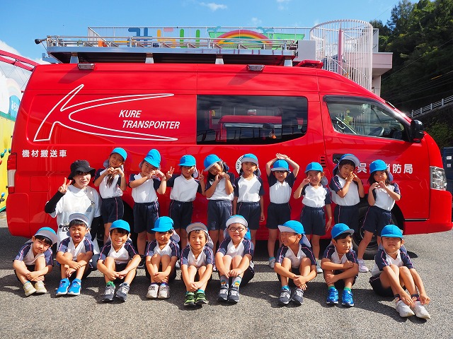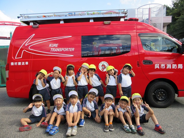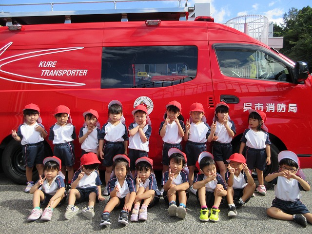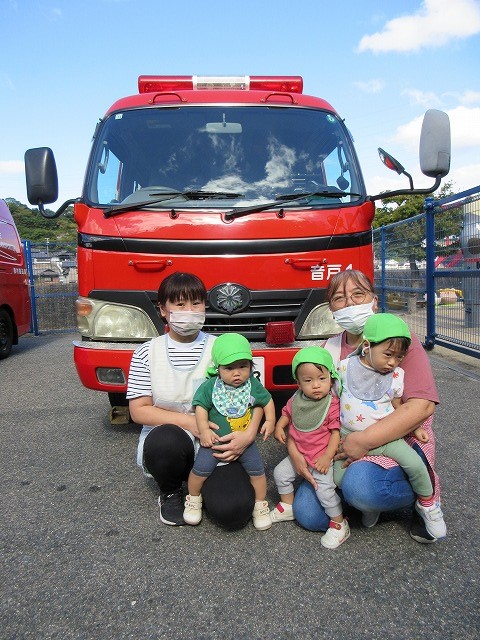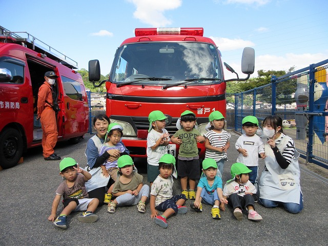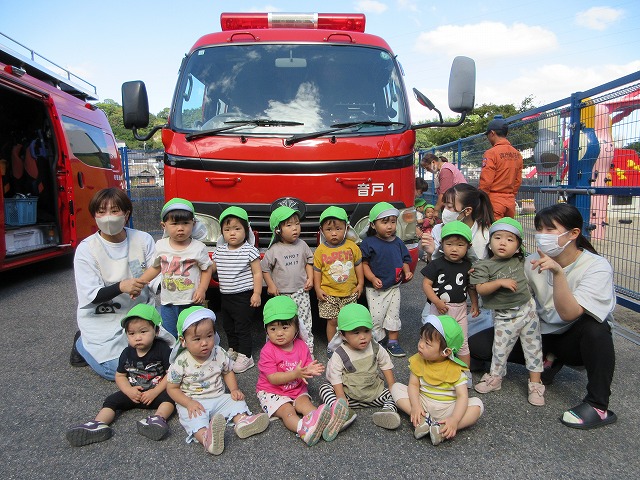 先日行われた総合避難訓練では、消防署の方に来ていただき、 職員は消火器訓練やAED講習、子どもたちは消防車の見学をさせて頂きました。 消防車を間近で見学させて頂き、子どもたちも大喜びでした^^ |