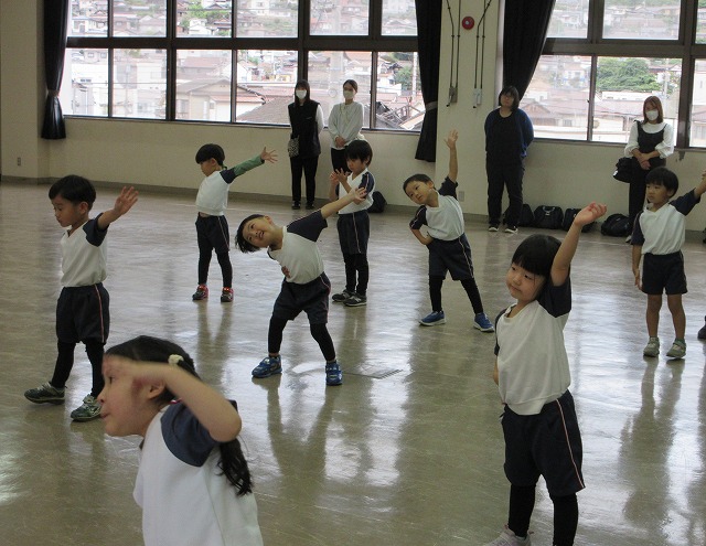 今年度初めての避難訓練をしました! 「地震が来ます」という放送が流れると、ダンゴムシのポーズや机の下にもぐり、自分の身を守ることができました。 その後の避難も「お(さない)・か(けない)・し(ゃべらない)・も(どらない)・ち(かづかない)」のお約束を守ることができていましたよ^^ |